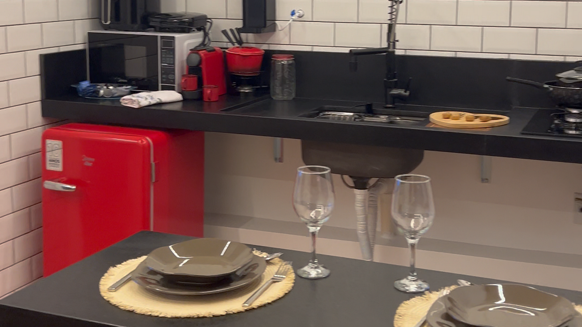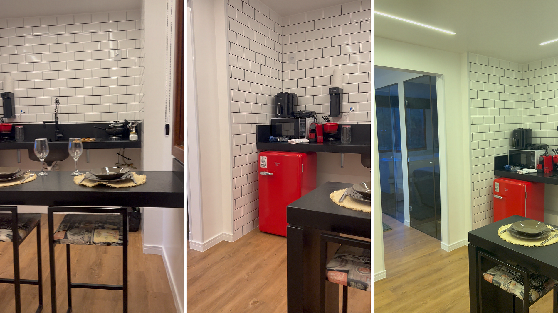 A mini cozinha completa, com bancada para jantar, permite preparar e saborear refeições no próprio espaço, garantindo praticidade e privacidade. Além disso, o lago artificial de águas cristalinas e peixes no Sítio Balango é ideal para momentos de relaxamento e contato com a natureza. O cuidado com cada detalhe e o ambiente sereno garantem uma estadia confortável e adequada.