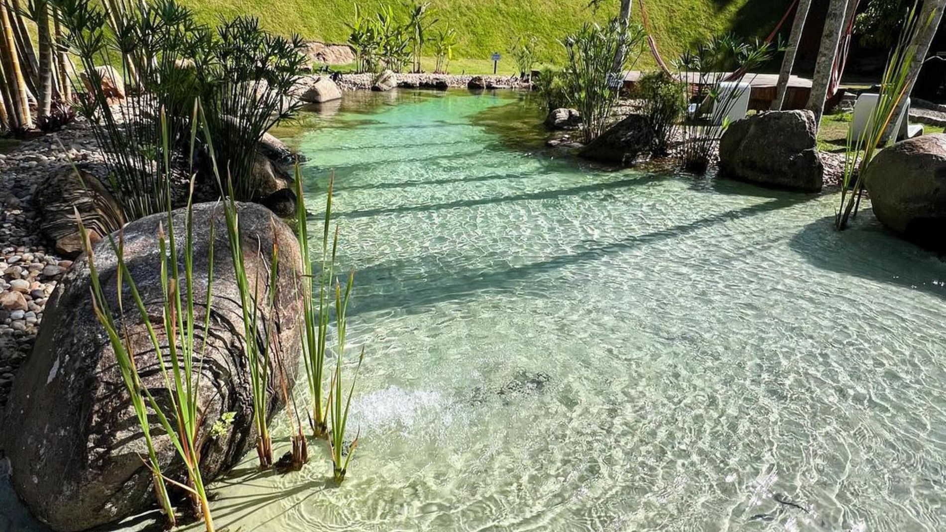 A mini cozinha completa, com bancada para jantar, permite preparar e saborear refeições no próprio espaço, garantindo praticidade e privacidade. Além disso, o lago artificial de águas cristalinas e peixes no Sítio Balango é ideal para momentos de relaxamento e contato com a natureza. O cuidado com cada detalhe e o ambiente sereno garantem uma estadia confortável e adequada.