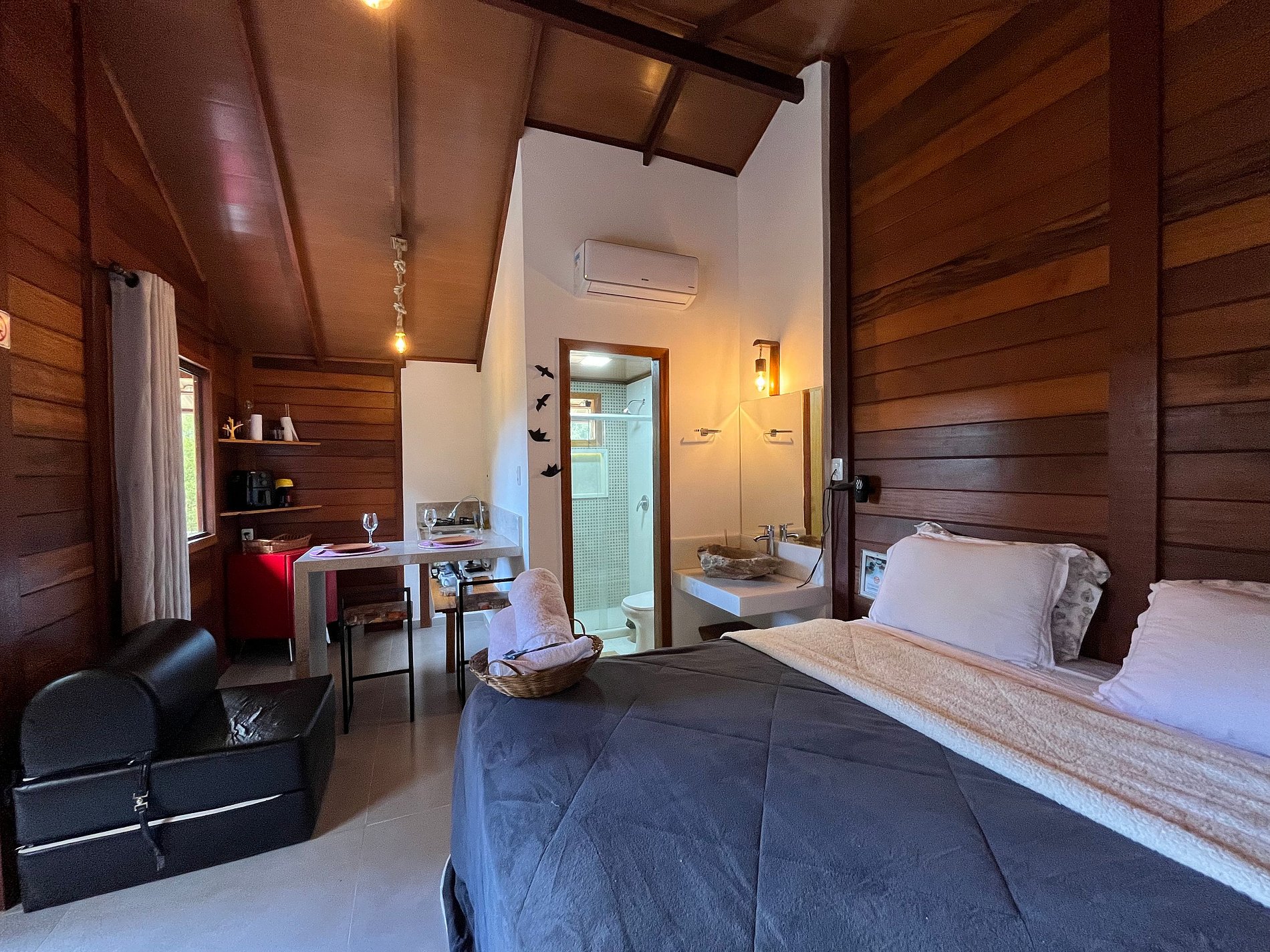 Viva dias incríveis nas montanhas capixabas! Maravilhosa região com clima agradável e natureza exuberante. Nossas cabanas são o refúgio perfeito para (re)conectar-se. Detalhes cuidadosamente pensados para uma estadia inesquecível, com ar condicionado, cozinha completa, cama Queen, banheiro, wi-fi, varanda, roupa de cama e banho, estacionamento privativo e muito mais. Venha viver essa experiência única!