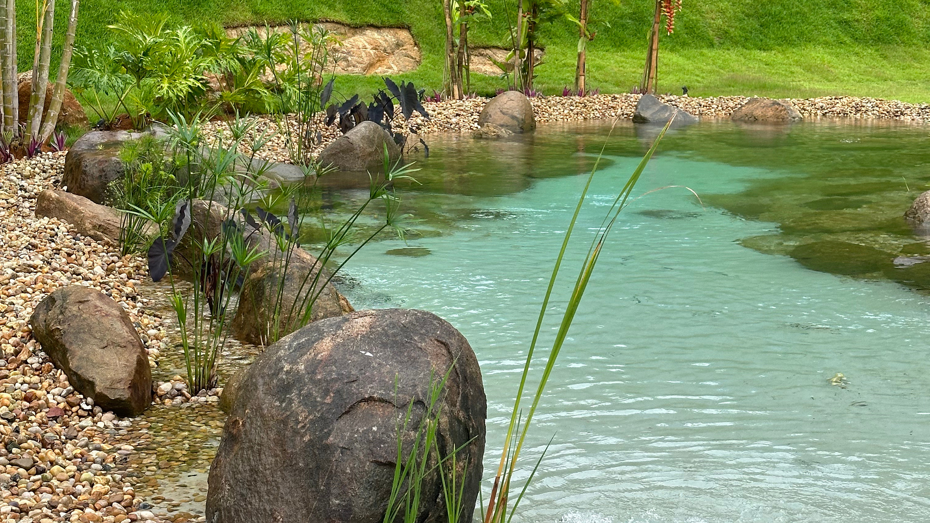 lago para mergulhar com os peixes;