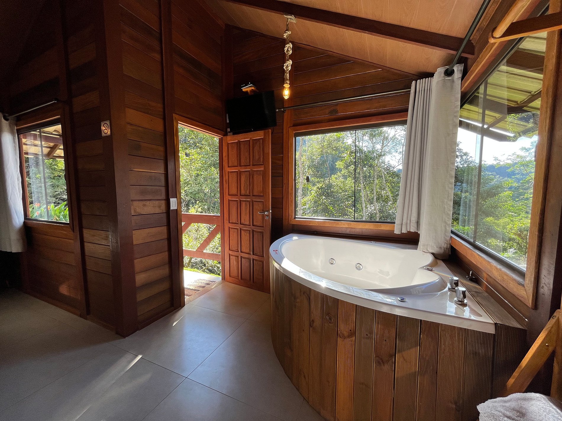 Todas as Cabanas Possuem: • Cama queen; • Banheiro; • Hidromassagem aquecida; • Varanda; • Fogo de chão ( fornecemos Lenha e acendedores); • Roupa de Cama e Banho; • Roupão de Banho; • Ar Condicionado Quente e Frio; • Cozinha Equipada com : (Airfryer, cooktop, cafeteira, frigobar, taças, panelas, talheres, filtro de barro. Fornecemos Pó de Café, Açúcar, Sal, adoçante, óleo); • TV Sky com canais liberados (TELECINE, HBO, NETFLIX); • Wi-Fi • Estacionamento privativo.