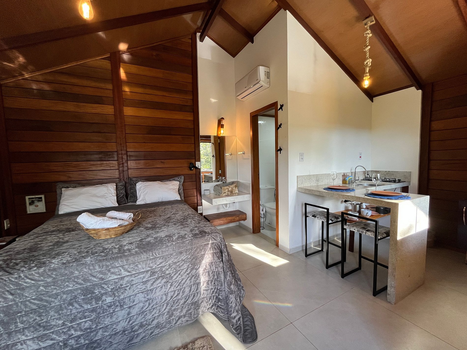 Viva dias incríveis nas montanhas capixabas! Maravilhosa região com clima agradável e natureza exuberante. Nossas cabanas são o refúgio perfeito para (re)conectar-se. Detalhes cuidadosamente pensados para uma estadia inesquecível, com ar condicionado, cozinha completa, cama Queen, banheiro, wi-fi, varanda, roupa de cama e banho, estacionamento privativo e muito mais. Venha viver essa experiência única!