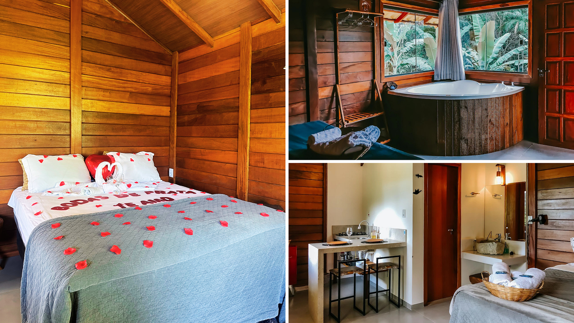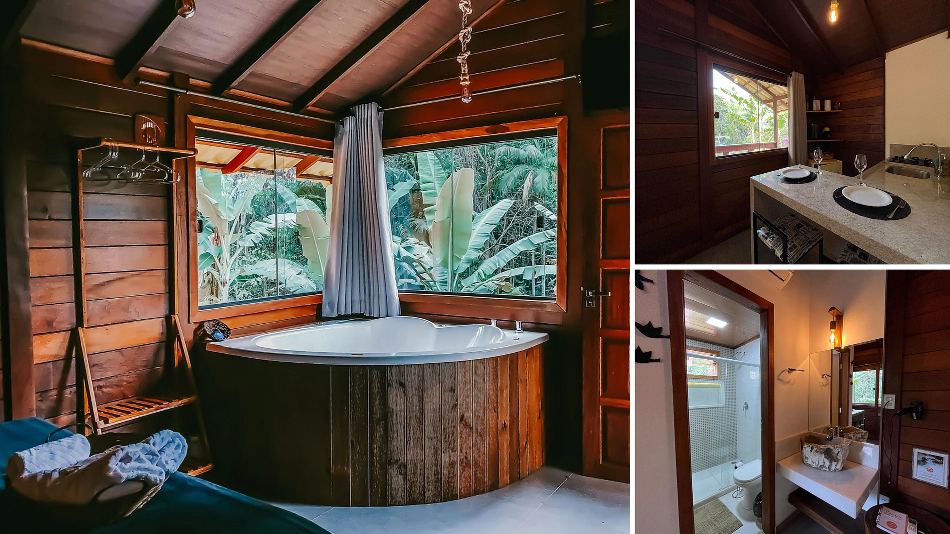 Todas as Cabanas Possuem: • Cama queen; • Banheiro; • Hidromassagem; • Varanda; • Fogo de chão ( fornecemos Lenha e acendedores); • Roupa de Cama e Banho; • Roupão de Banho; • Ar Condicionado Quente e Frio; • Cozinha Equipada com : (Airfryer, cooktop, cafeteira, frigobar, taças, panelas, talheres, filtro de barro. Fornecemos Pó de Café, Açúcar, Sal, adoçante, óleo); • TV Sky com canais liberados (TELECINE, HBO, NETFLIX); • Wi-Fi • Estacionamento privativo.